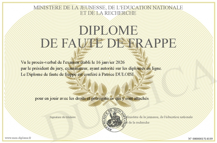 Envoyez par email votre Diplôme de faute de frappe personalisé