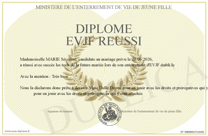 Envoyez par email votre Diplôme EVJF Réussi personalisé