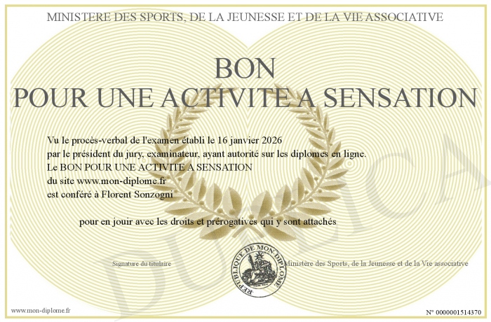 Envoyez par email votre BON POUR UNE ACTIVITE A SENSATION personalisé