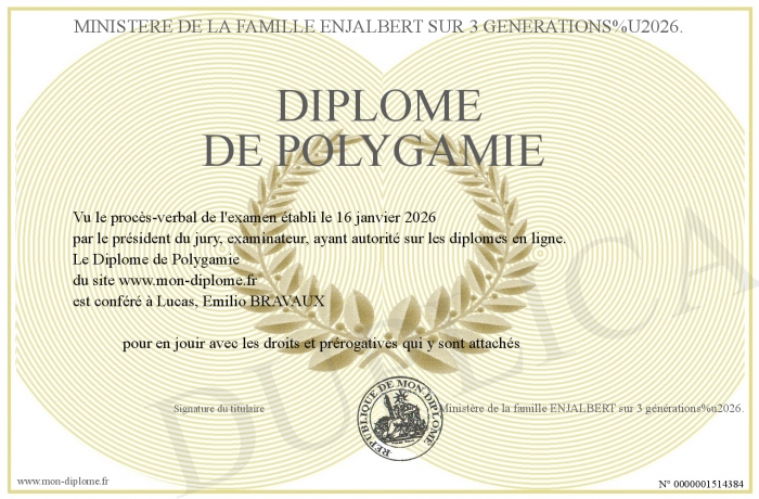 Envoyez par email votre Diplôme de Polygamie personalisé
