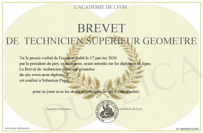 Envoyez par email votre Brevet de technicien supérieur géométre personalisé