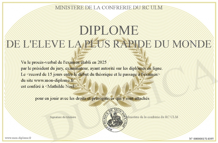 Envoyez par email votre Diplôme de l'éléve la plus rapide du monde personalisé