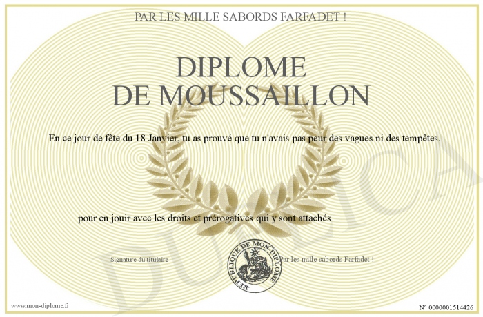 Envoyez par email votre Diplôme de Moussaillon personalisé