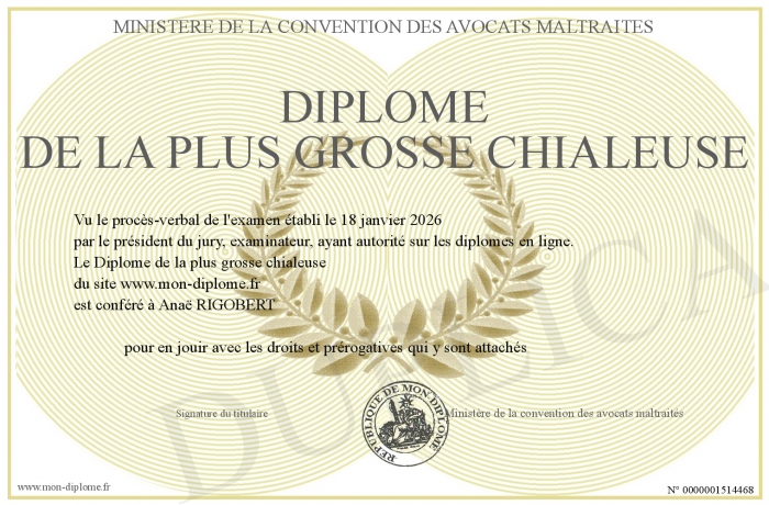 Envoyez par email votre Diplôme de la plus grosse chialeuse personalisé