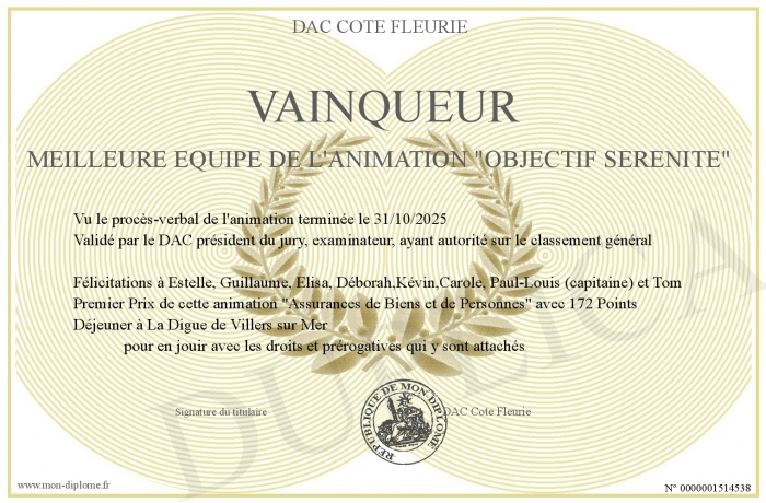Envoyez par email votre VAINQUEUR Meilleure équipe de l'animation -Objectif Sérénité- personalisé