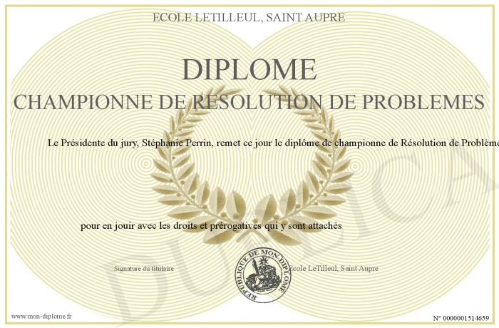 Envoyez par email votre Diplôme championne de Résolution de problèmes personalisé