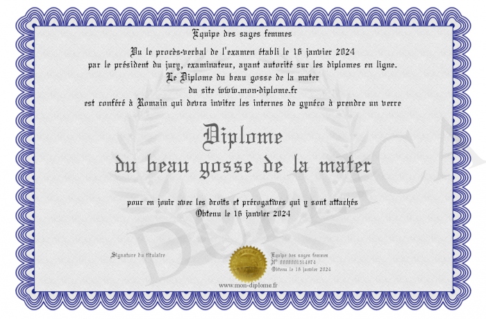 Envoyez par email votre Diplôme du beau gosse de la mater personalisé
