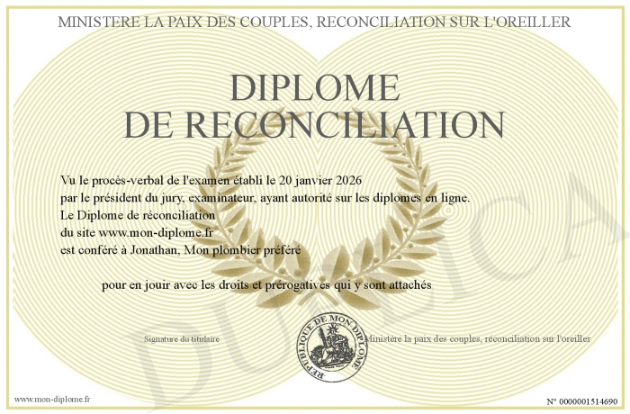 Envoyez par email votre Diplôme de réconciliation personalisé