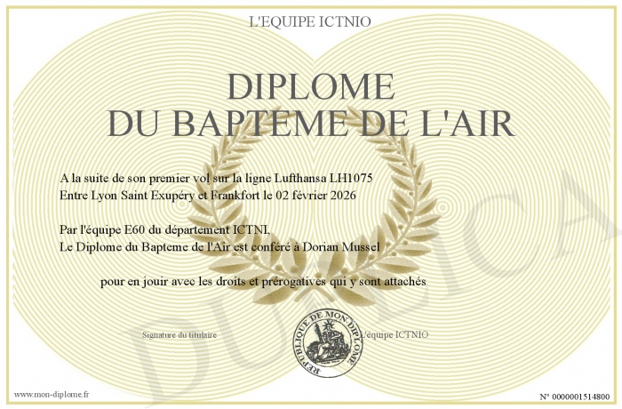 Envoyez par email votre Diplôme du Bapteme de l'Air personalisé