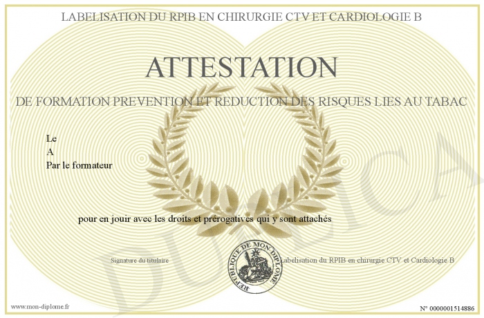 Envoyez par email votre Attestation de formation prévention et reduction des risques liés au tabac personalisé