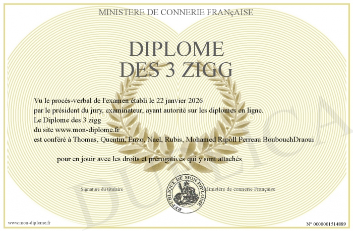 Envoyez par email votre Diplôme des 3 zigg personalisé