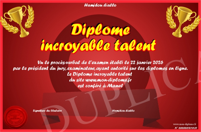 Envoyez par email votre Diplôme incroyable talent personalisé