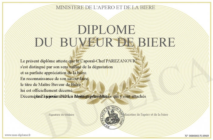 Envoyez par email votre Diplôme du buveur de bière personalisé