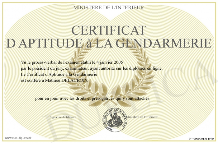 Envoyez par email votre Certificat d Aptitude à la Gendarmerie personalisé