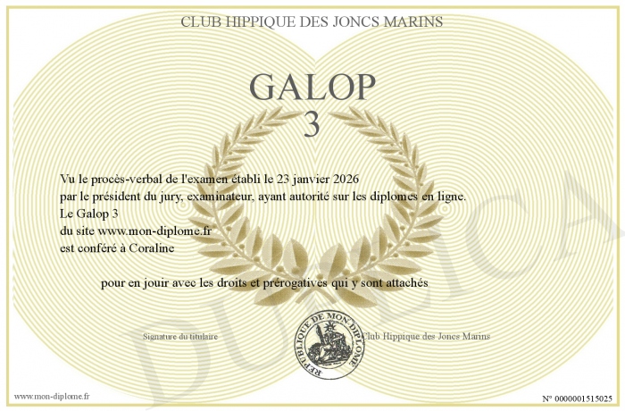 Envoyez par email votre Galop 3 personalisé