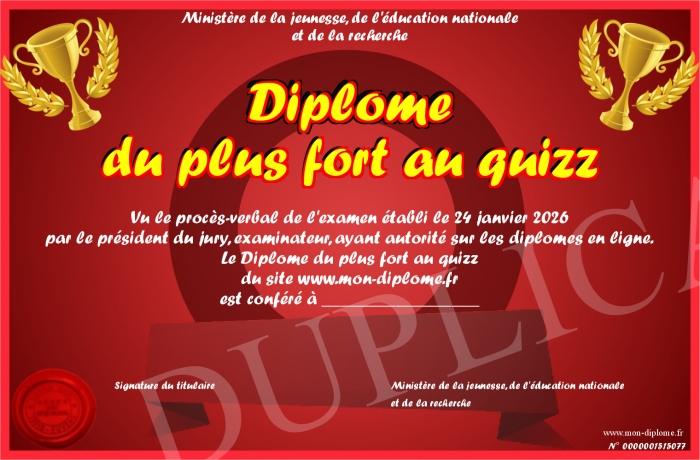 Envoyez par email votre Diplôme du plus fort au quizz personalisé