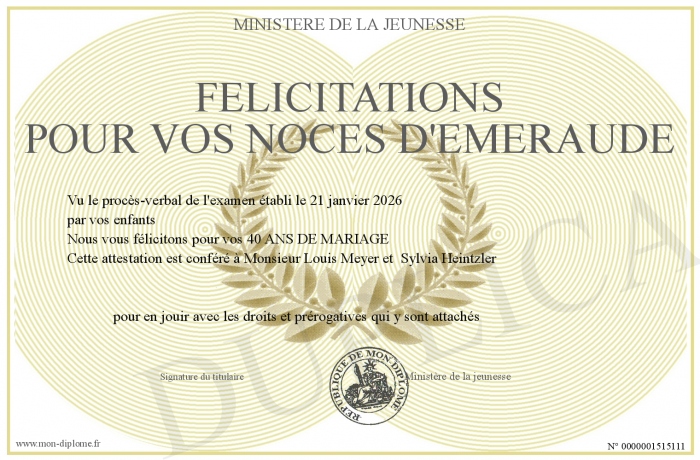 Envoyez par email votre Félicitations pour vos noces d'émeraude personalisé