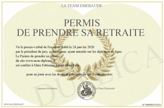 Envoyez par email votre Permis de prendre sa retraite personalisé