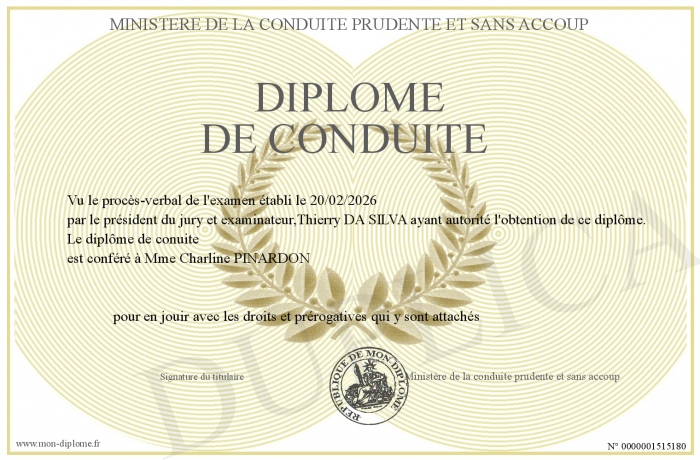 Envoyez par email votre Diplôme de Conduite personalisé