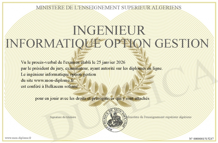 Envoyez par email votre ingénieur informatique option gestion personalisé