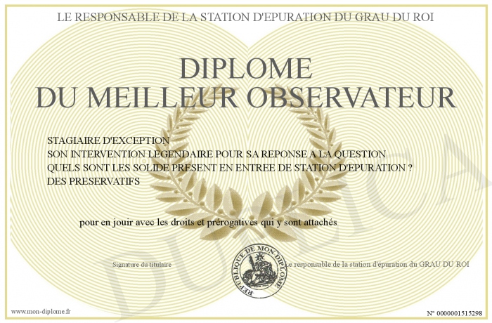 envoyé par le Le responsable de la station d'épuration du GRAU DU ROI !