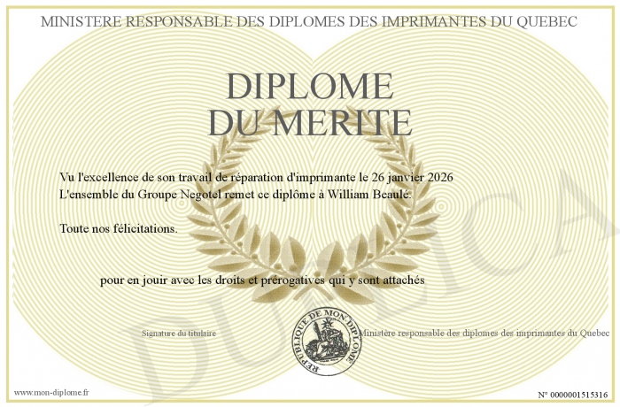 envoyé par le Ministère responsable des diplomes des imprimantes du Quebec !