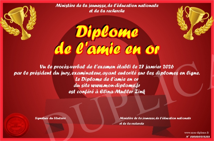Envoyez par email votre Diplôme de l'amie en or personalisé