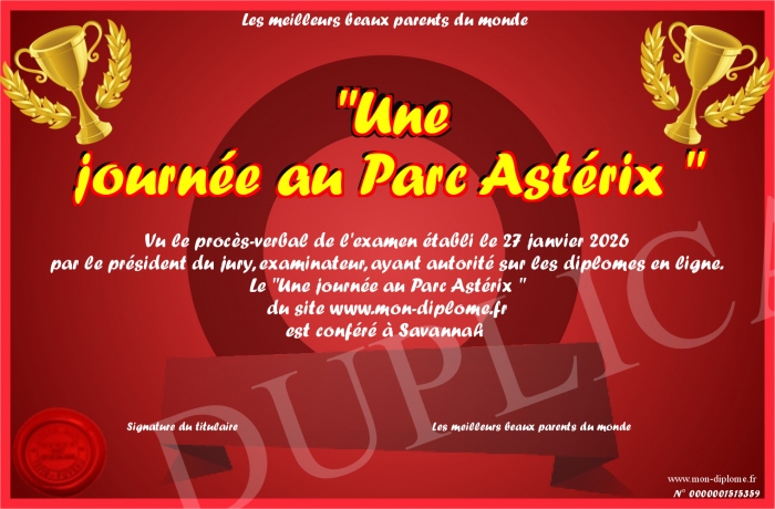 Envoyez par email votre -Une journée au Parc Astérix - personalisé
