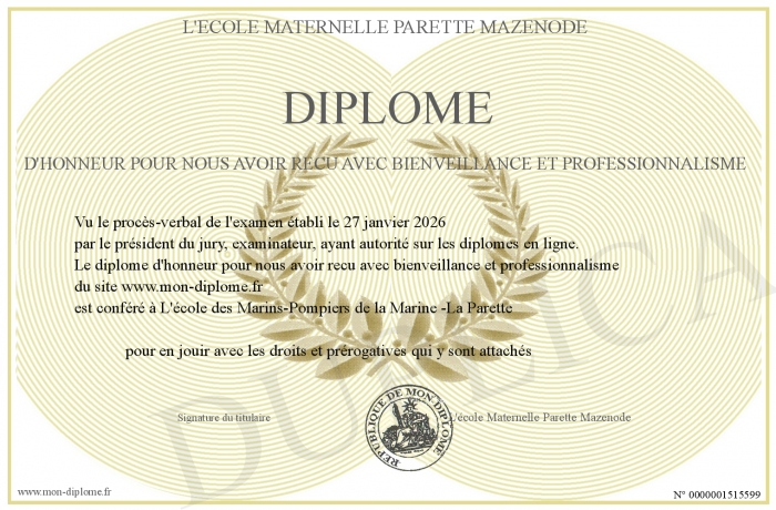 Envoyez par email votre diplome d'honneur pour nous avoir recu avec bienveillance et professionnalisme personalisé