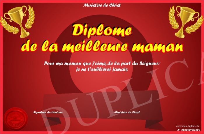 Envoyez par email votre Diplôme de la meilleure maman personalisé
