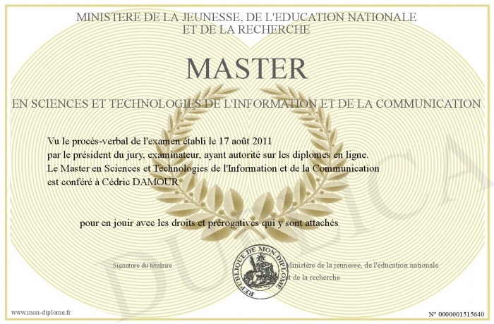 Envoyez par email votre Master en Sciences et Technologies de l'Information et de la Communication personalisé
