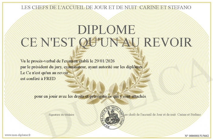 Envoyez par email votre Diplôme Ce n'est qu'un au revoir personalisé