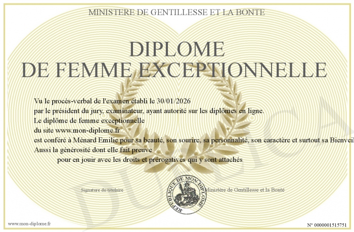 Envoyez par email votre Diplôme de Femme exceptionnelle personalisé