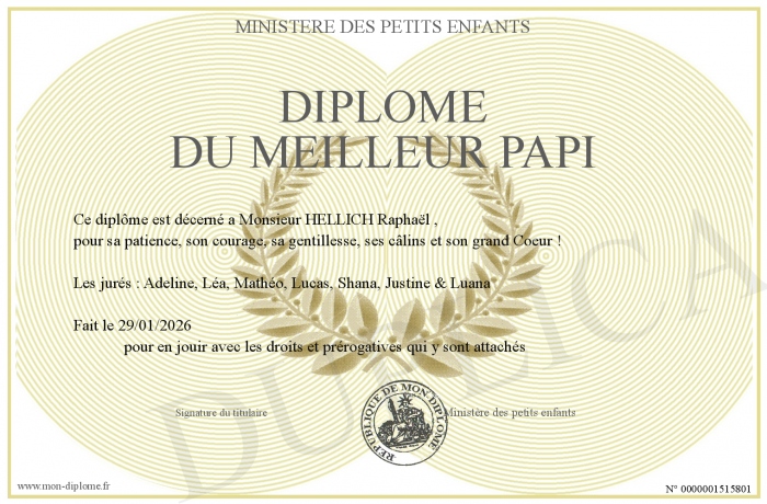 Envoyez par email votre Diplôme du meilleur papi personalisé