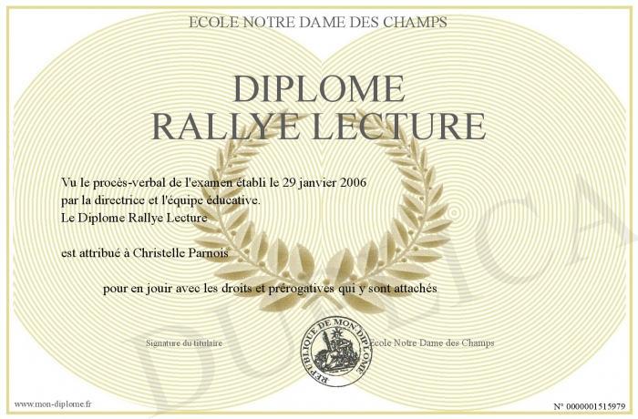 Envoyez par email votre Diplôme Rallye Lecture personalisé