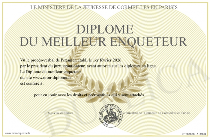 Envoyez par email votre Diplôme du meilleur enqueteur personalisé