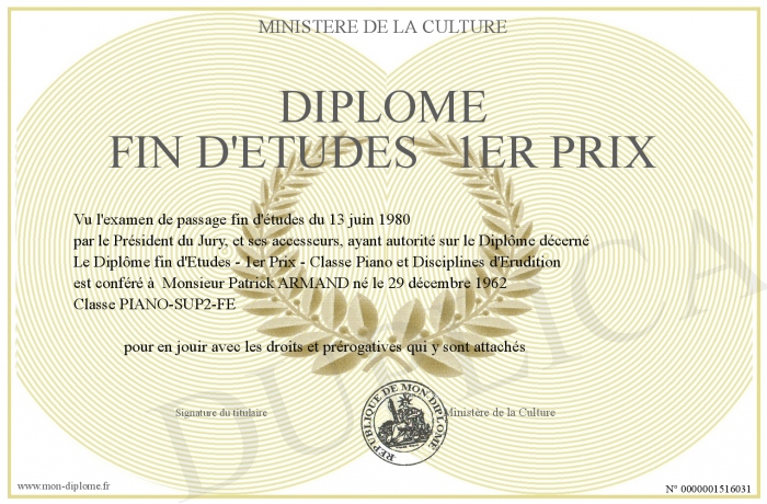 Envoyez par email votre Diplôme Fin d'Etudes 1er Prix personalisé