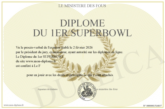 Envoyez par email votre Diplôme du 1er SUPERBOWL personalisé