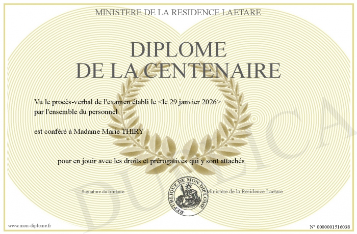 Envoyez par email votre Diplôme de la Centenaire personalisé