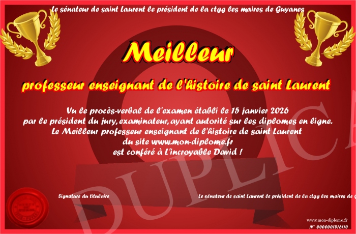 Envoyez par email votre Meilleur professeur enseignant de l'histoire de saint Laurent personalisé