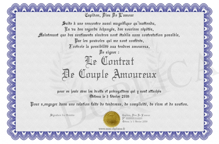 Envoyez par email votre Le Contrat De Couple Amoureux personalisé