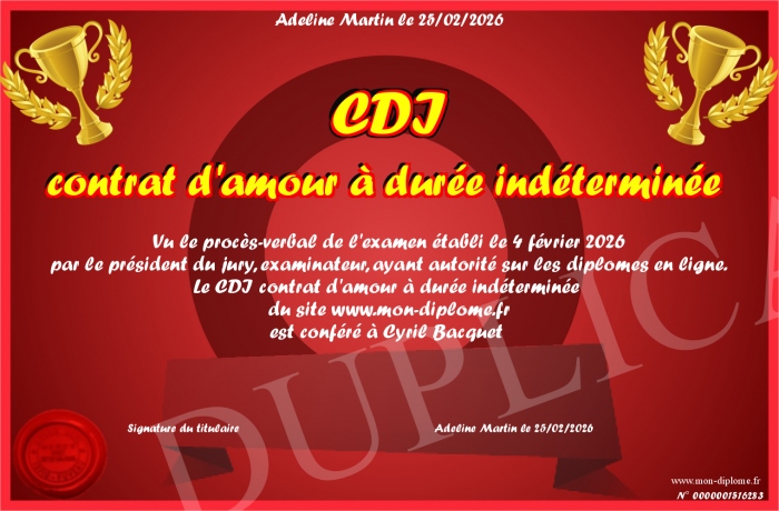 Envoyez par email votre CDI contrat d'amour à durée indéterminée personalisé