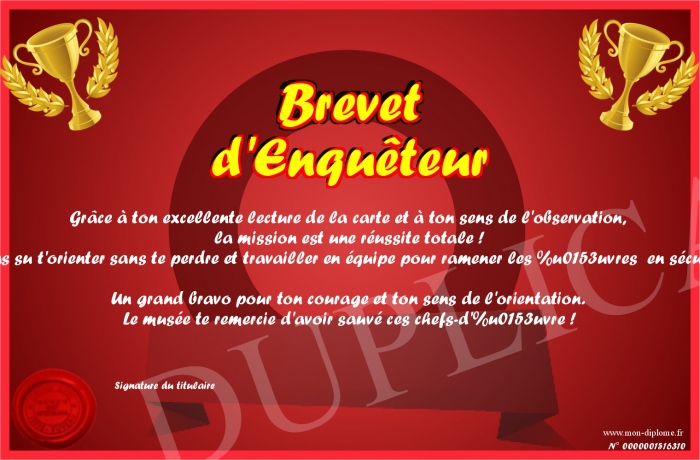 Envoyez par email votre Brevet d'Enquêteur personalisé
