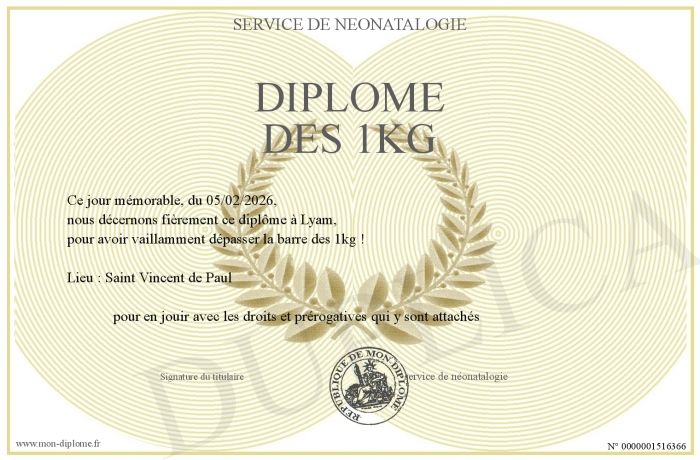Envoyez par email votre Diplôme des 1kg personalisé