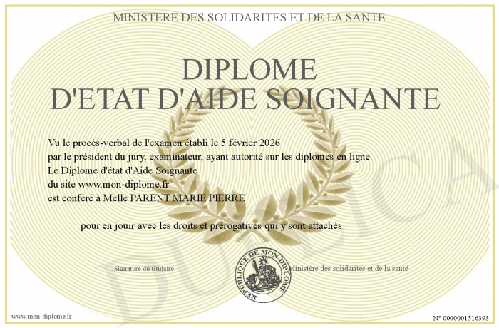 Envoyez par email votre Diplôme d'état d'Aide Soignante personalisé