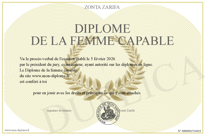 Envoyez par email votre Diplôme de la femme capable personalisé