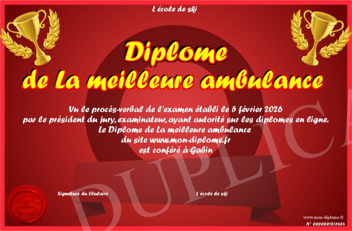 Envoyez par email votre Diplôme de La meilleure ambulance personalisé
