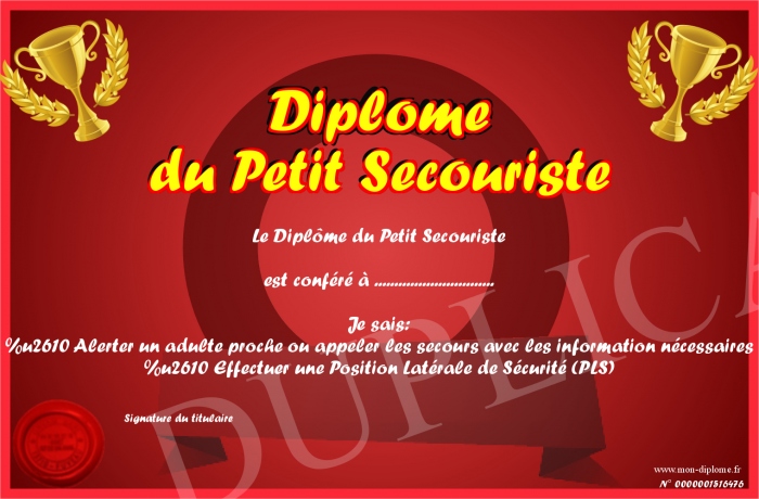 Envoyez par email votre Diplôme du Petit Secouriste personalisé