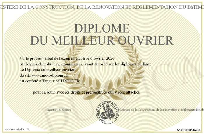 Envoyez par email votre Diplôme du meilleur ouvrier personalisé