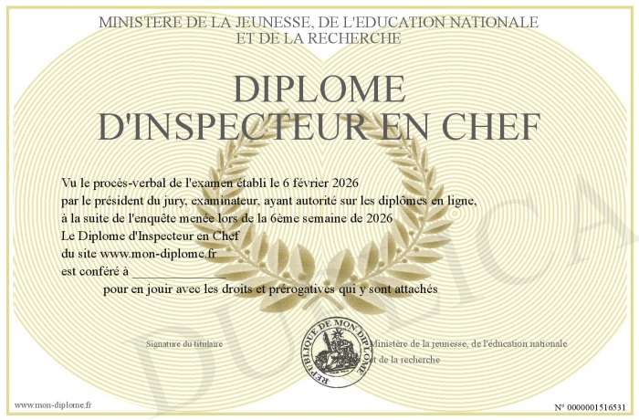Envoyez par email votre Diplôme d'Inspecteur en Chef personalisé
